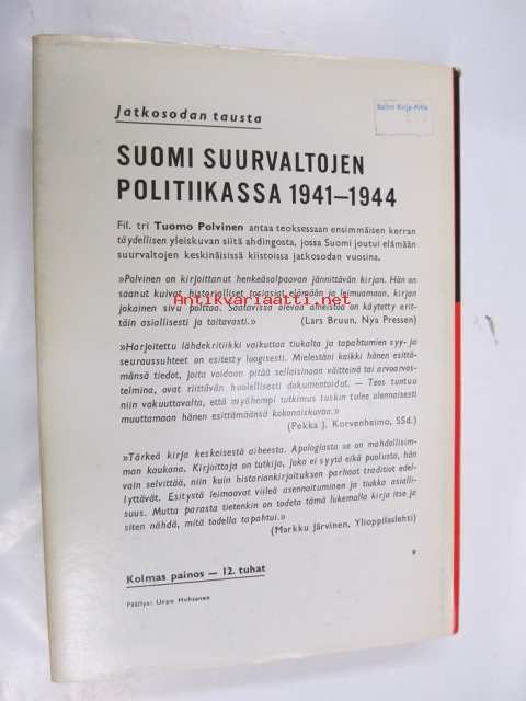 Saatavilla 1 kpl Julkaisuvuosi 1964 Sivuja 330 Painos 3. Kunto K3 Sidonta/painoasu Sidottu (kansipaperit) Kielet Suomi
