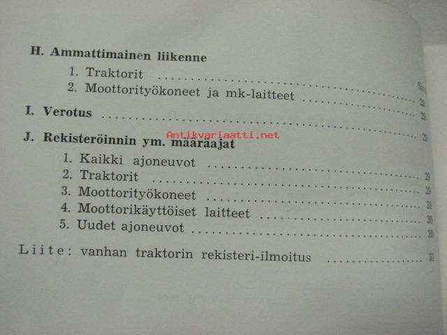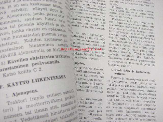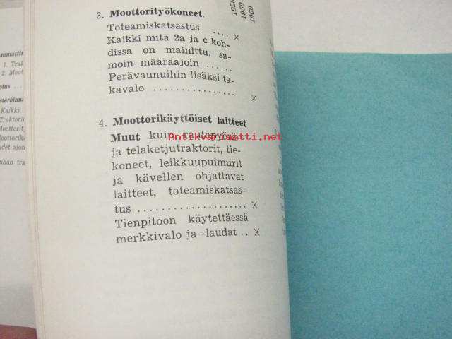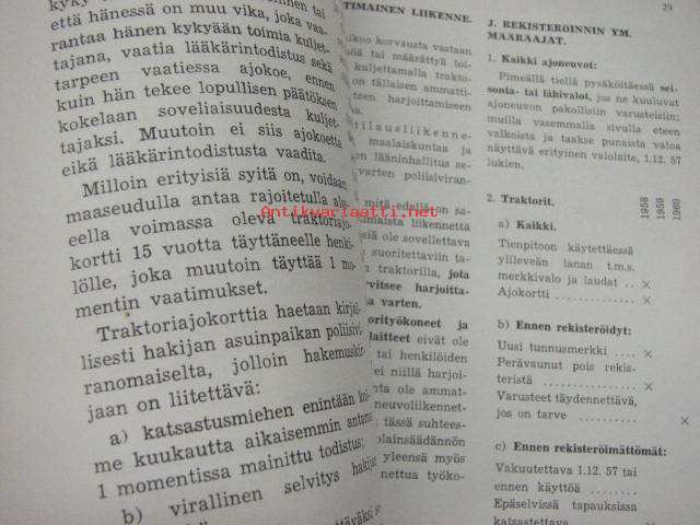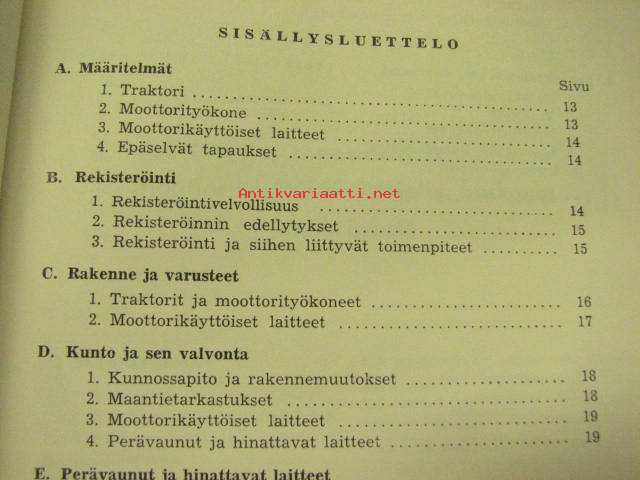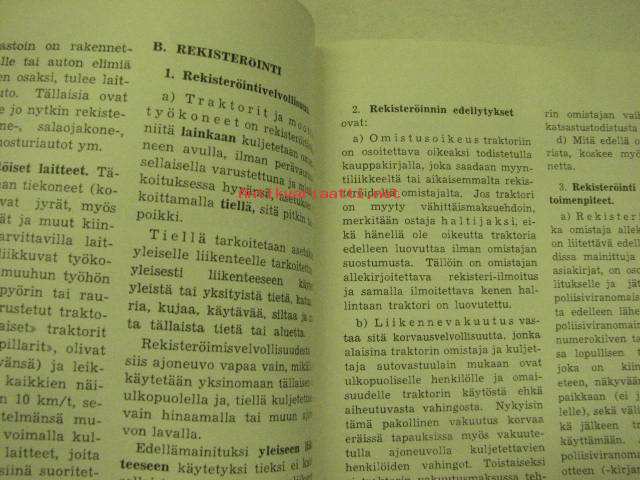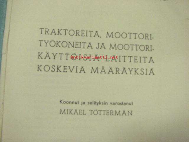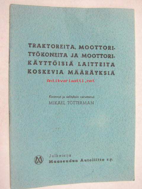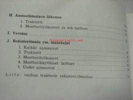 Traktoreita, moottorityökoneita ja moottorikäyttöisiä laitteita koskevia määräyksiä 1958