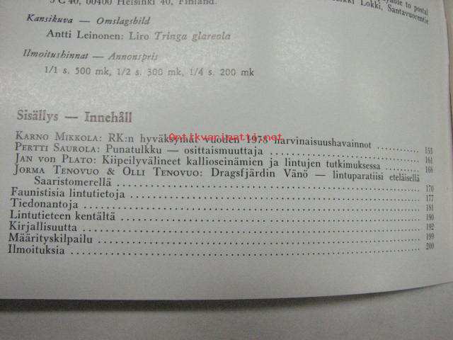 | Saatavilla | 1 kpl | | Julkaisuvuosi | 1979 | | Sivuja | 36 | | Kunto | K3 | | Sidonta/painoasu | Lehti | | Kielet | Suomi |