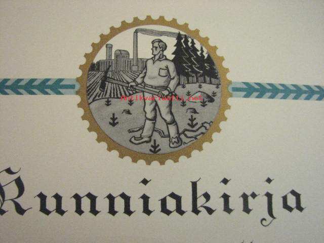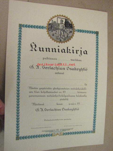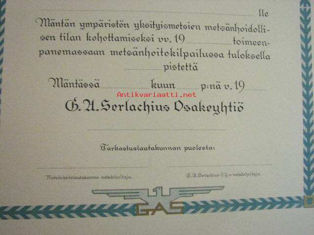 Kunniakirja Oy G.A. Serlachius antanut Mäntän ympäristön yksityismetsien metsänhoidollisen tilan kohottamiseksi...