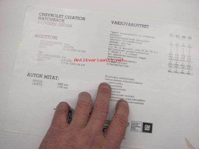 Chevrolet Citation Hatchback Sedan -myyntiesite