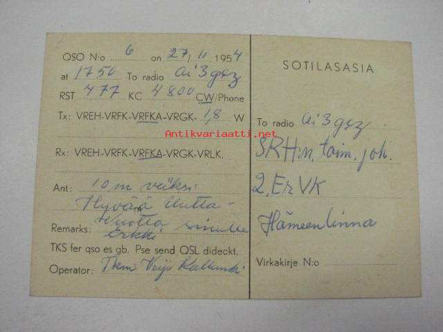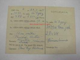 OI1F /QTH Niinisalo 27.11.1954 -puolustusvoimain radiosähköttäjän yhteyskortti