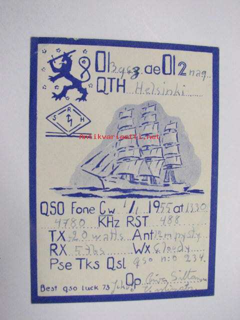OI3GCZ / Oi2nag QTH Helsinki 1.1.1955 -puolustusvoimain radiosähköttäjän yhteyskortti