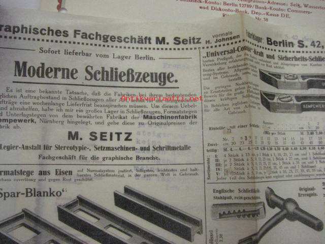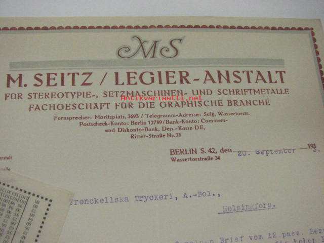 M. Seitz / Legier-Anstalt, Berlin, 20.9.1913 -asiakirja + Moderne Scliesszeuge-työkaluesite