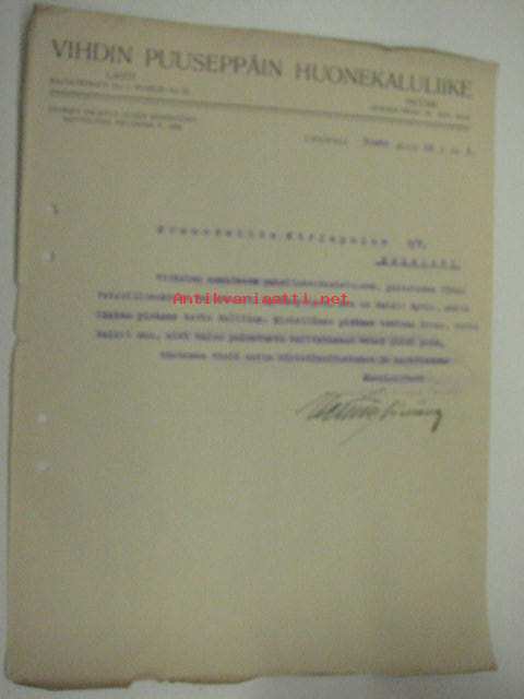 Vihdin Puuseppäin Huonekaluliike, Lahti / Pietari, 10.5.1913 -asiakirja