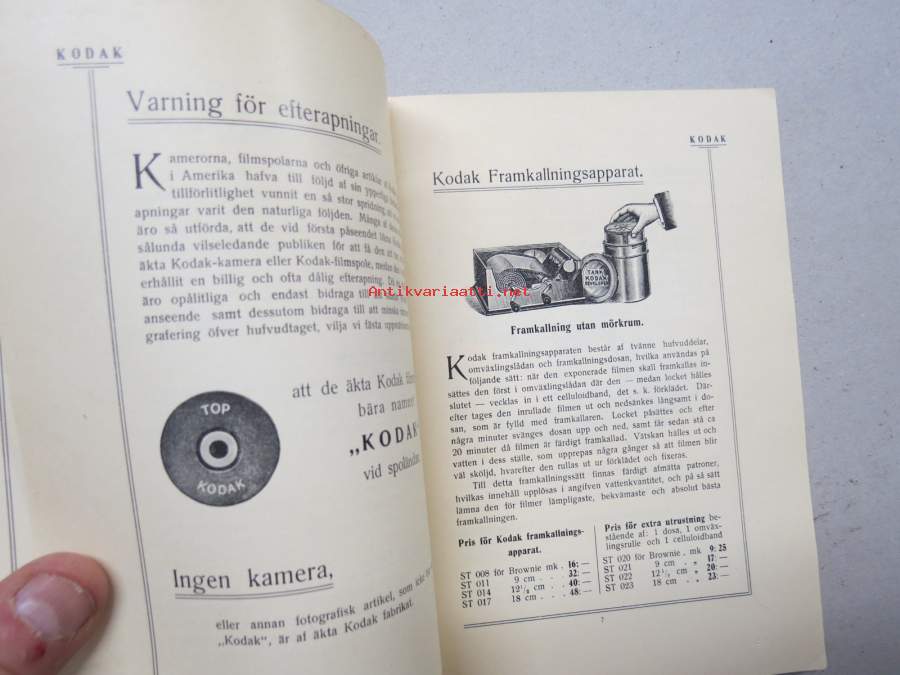 Kodak-artiklar - Katalog öfver Kodak-artiklar -tuoteluettelo kameroille ja tarvikkeille 1910