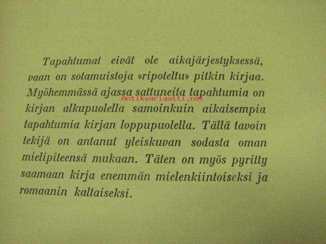 Ryynänen V., Scandia-Tukku Oy, 1964 12 x 17 cm. Kirjoittajan omintakeiset muistot sodasta.