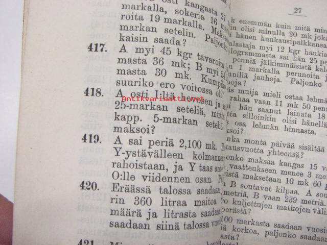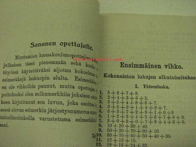 Esimerkkejä laskuopin alalta kansakouluja varten, ensimmäinen vihko