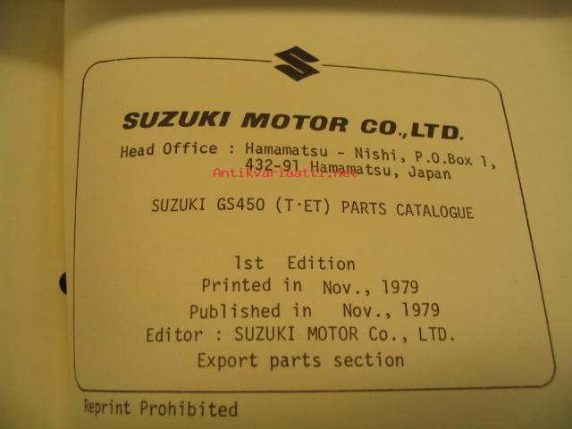 Suzuki GS450T GS450ET parts catalogue varaosaluettelo