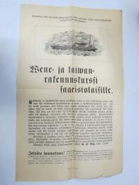 Wene- ja laiwanrakennuskurssi saaristolaisille - Turun Teollisuuskoulu -1800-luvun lopun juliste, ultraharvinainen!