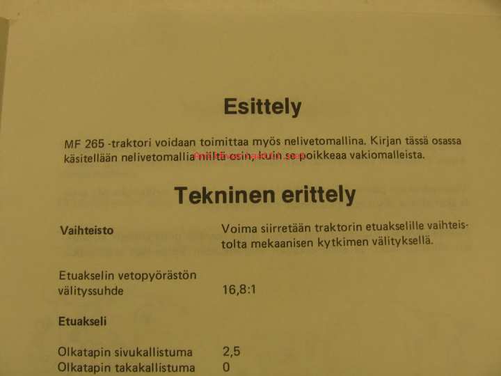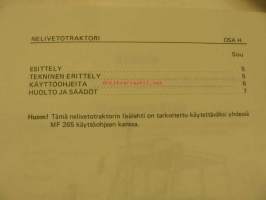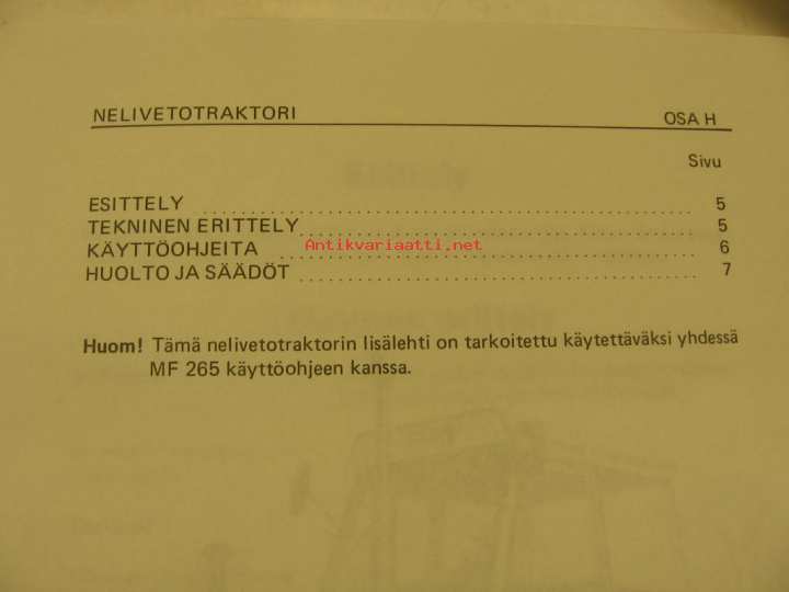 Massey Ferguson 265-4 nelivetotraktri käyttöohjekirjan lisälehdet nelivetomalliin
