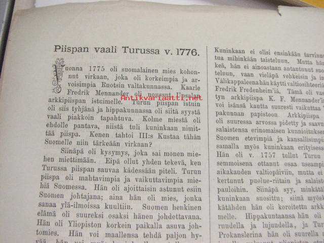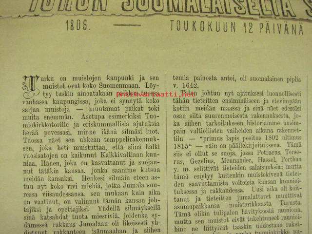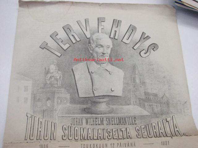 Tervehdys Johan Wilhelm Snellman´ille Turun Suomalaiselta Seuralta 12.5.1881 -sis. artikkelit; Piispan vaali Turussa v. 1776, Minne on Agricolan muistopatsas