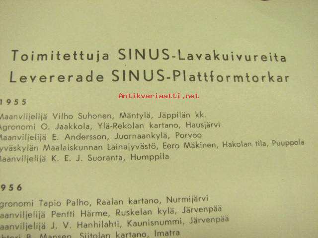Sinus viljalietsot, lavakuivurit -myyntiesitteitä