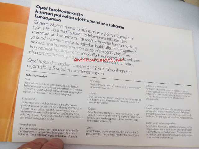 Opel Rekord -myyntiesite / sales brochure