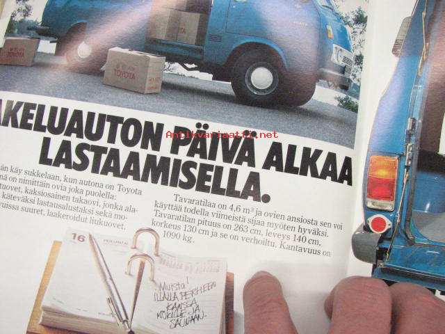 Toyota mainosviiri -autoliikkeisiin tarkoitettua mainosmateriaali, muovia, arvilta 70-luvulta, 4 kpl erä
