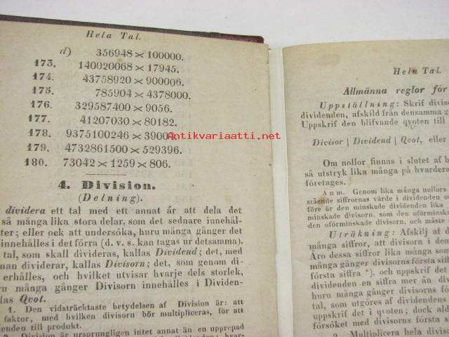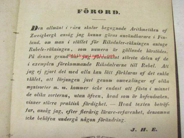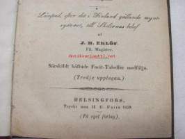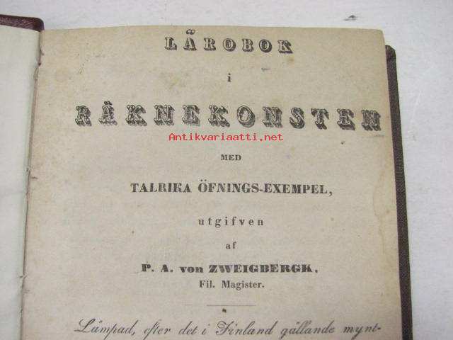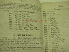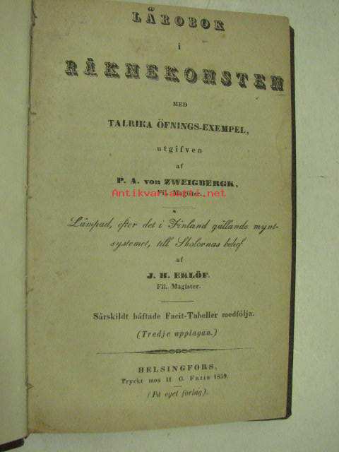 Lärobok i Räknekonsten Med Talrika Öfning-Exempel...Lämpad, efter det i finland gällande myntsystemet, till Skolornas behof, Helsingfors 1859, tryckt hos H.G. Friis