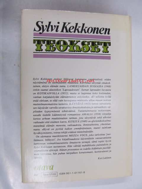Saatavilla 1 kpl Julkaisuvuosi 1974 Sivuja 320 Painos 3. Kunto K3 Sidonta/painoasu Sidottu (kansipaperit) ISBN 951-1-01161-8 Kielet Suomi
