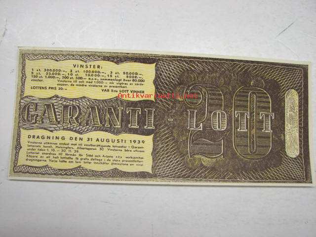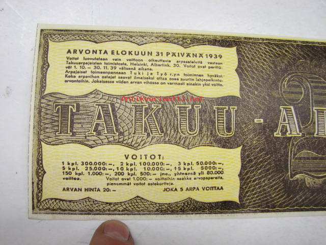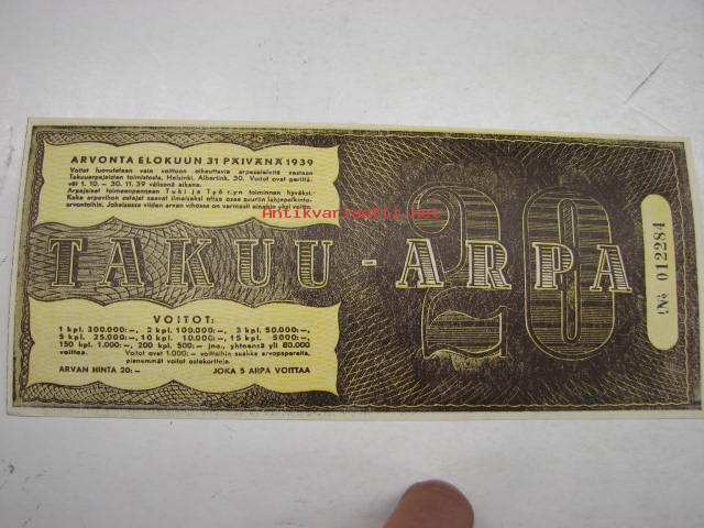 Tuki ja Työ ry, Takuu-arpa 1939, nr 012284, 20 mk