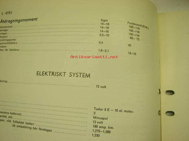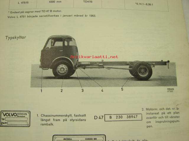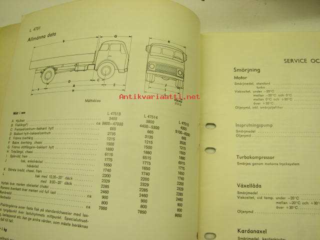 Volvo Lastvagnar L 4751 Specifikationer Avd. 0 (03) -korjaamokirjasarjan osa, mitat ja tiedot
