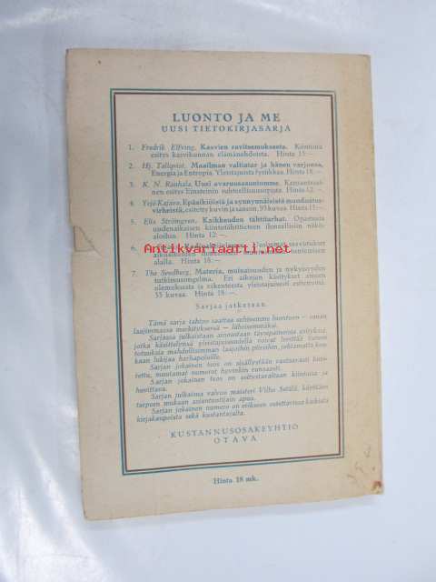 Saatavilla 1 kpl Julkaisuvuosi 1927 Sivuja 185 Painos 1. Kunto K3 Aukileikkaamaton Sidonta/painoasu Nidottu (pehmeäk.) Kielet Suomi