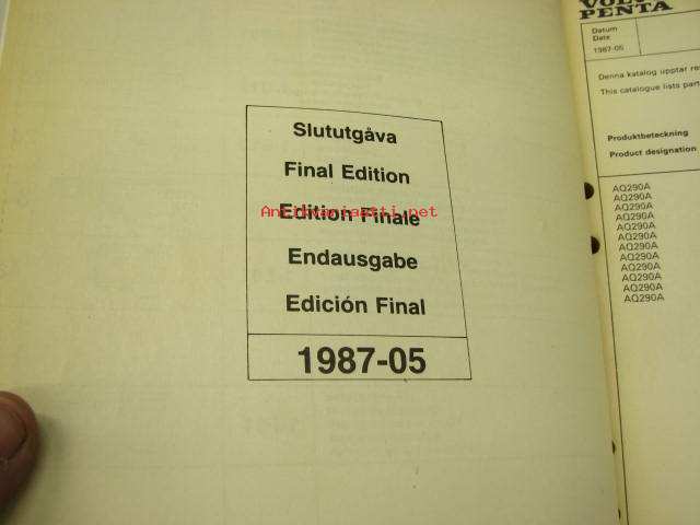 Volvo Penta AQ 290A Parts Catalogue, Reservdelskatalog -varaosaluettelo