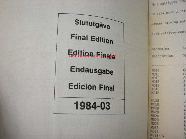 Volvo Penta MD 1B, MD 2B, MD 3B Reservdelskatalog, Parts Catalogue -varaosaluettelo