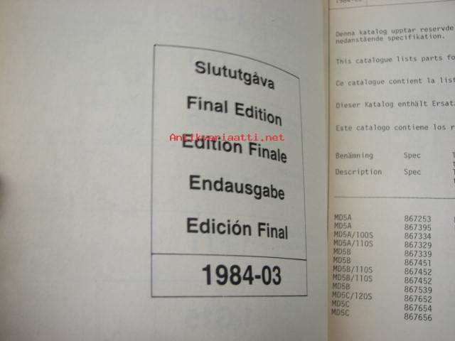 Volvo-Penta MD 5 Reservdelskatalog, Parts Catalogue -varaosaluettelo