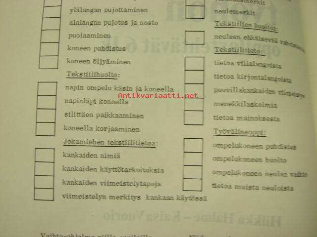 Kaavaoppivihko - jonkinoppilaitoksen käsityönopetuksen tai vastaavan "työvihko", jossa iso määrä erilaisten vaatteiden kaavoja yms.
