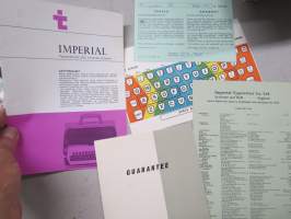 Imperial Messenger Typewriter -kirjoituskone käyttöohjeet ym. toimituksen yhteudessä tulleet paperit