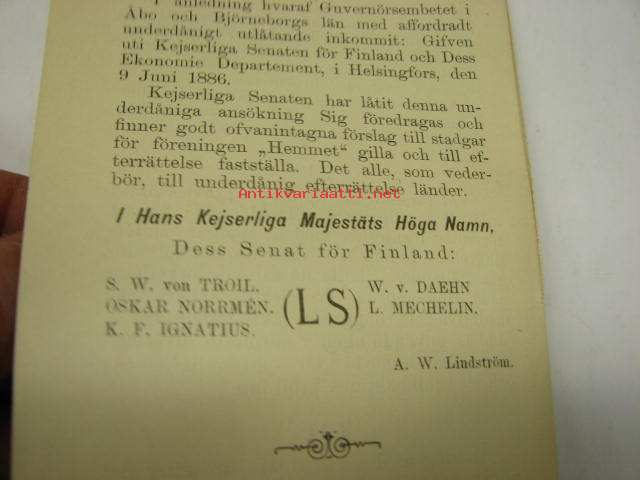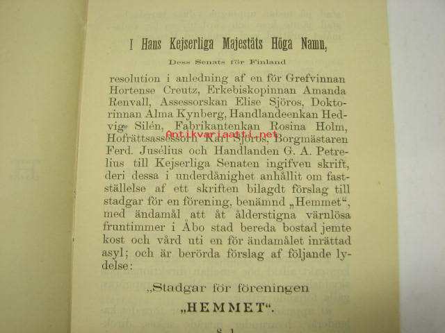 Stadgar för Föreningen Hemmet 1894 -säännöt vanhainkotiyhdistykselle