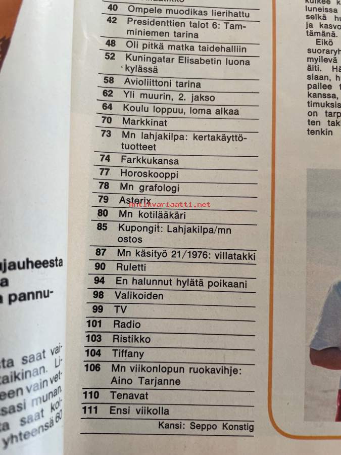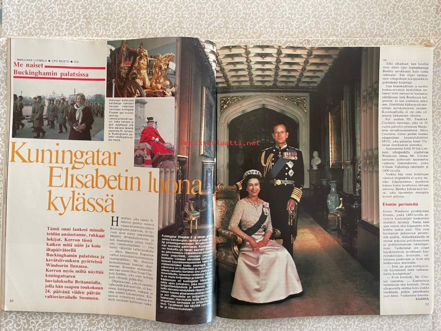 Me Naiset 1976 nro 21 ilmestynyt 20.5.1976, Tamminiemi, Andreas Alariesto, kuningatar Elisabetin luona kylässä