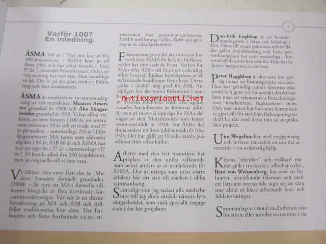"Sång, med glädje i ditt spår..." Åbo Sångarbröder Musices Amantes 100 år 1908-2008