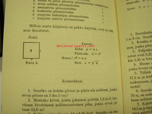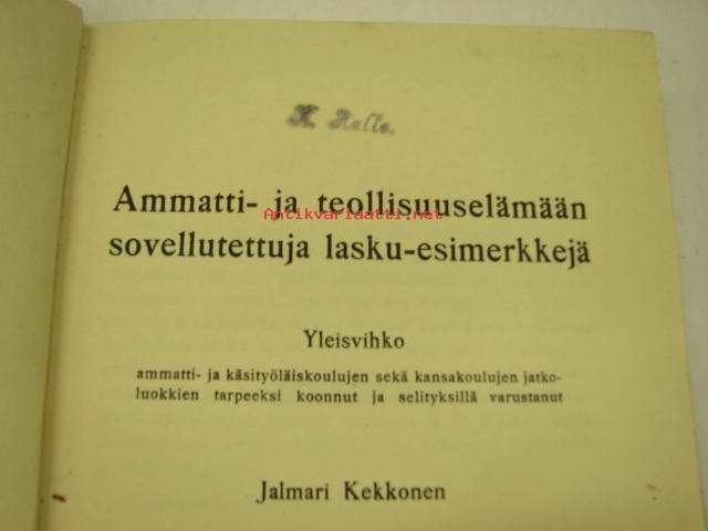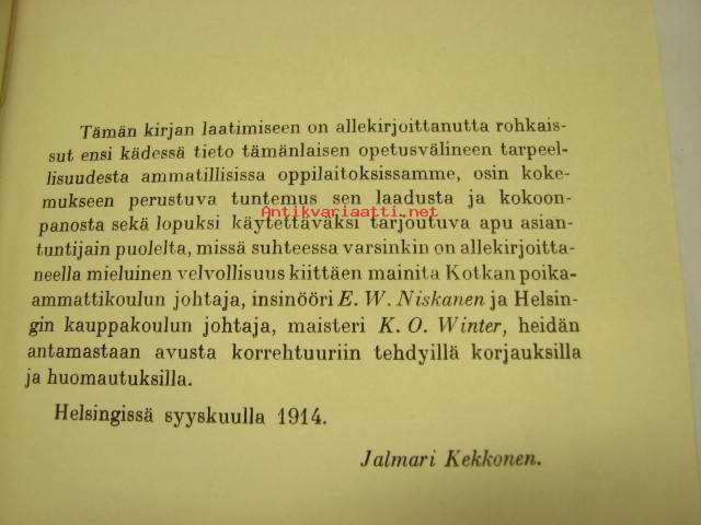 Laskuesimerkkejä Ammatti ja teollisuuselämään sovellettuja laskuesimerkkejä Yleisvihko ammatti- ja käsityöläiskoulujen sekä kansakoulujen jatkoluokkien tarpeeksi...