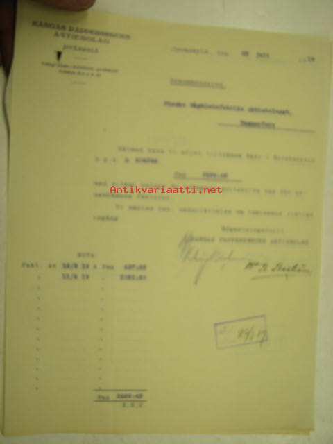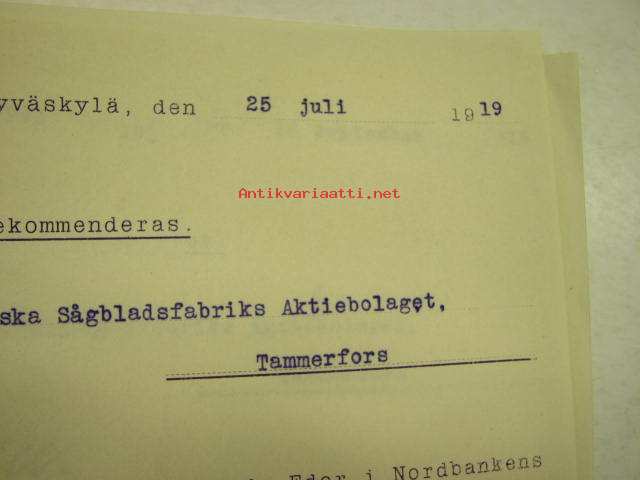 Kangas Pappersbruks Ab (Kankaan Paperitehdas), 25.7.1919, Jyväskylä -asiakirja