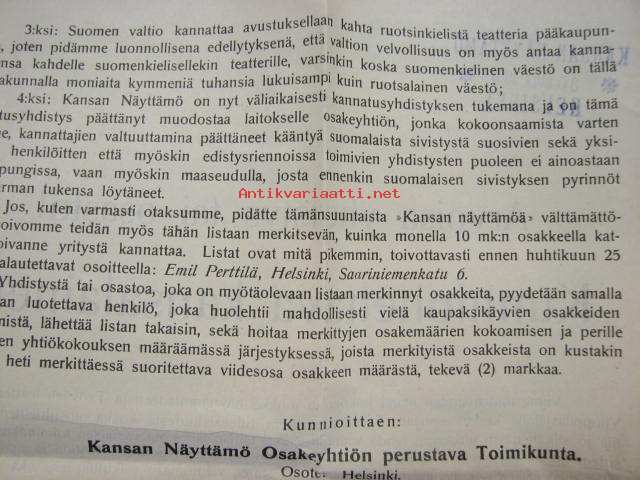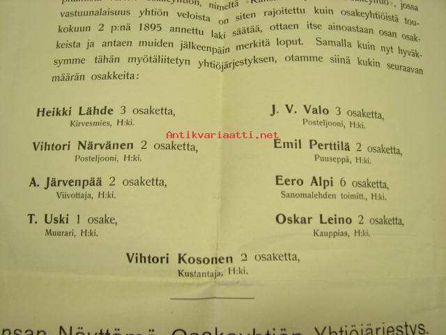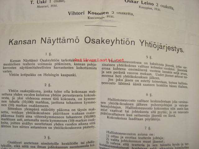 Kansan Näyttämö, Helsinki 1907, Yhtiösopimus ja osakkeiden merkitsemislista