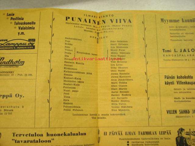 Punainen viiva - Työväen Näyttämöiden Liiton Turun Aluejärjestö - Nummen Työväen Näyttämö, Tarmon Näyttämö, Kisa-Veikkojen Näyttämö, Teräksen Näyttämö - yhteisesityksenä -käsiohjelma