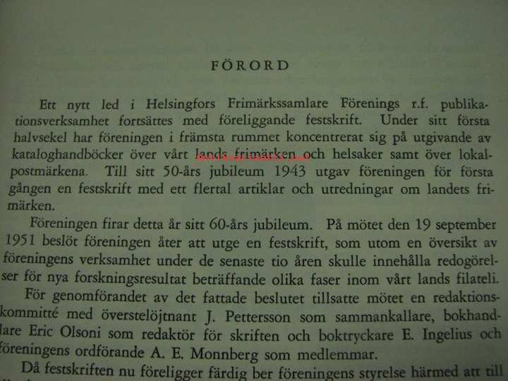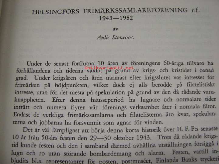 Helsingfors frimärkssamlare förening r.f. Jubileumsskrift 1953 -postimerkkikerhon juhlajulkaisu