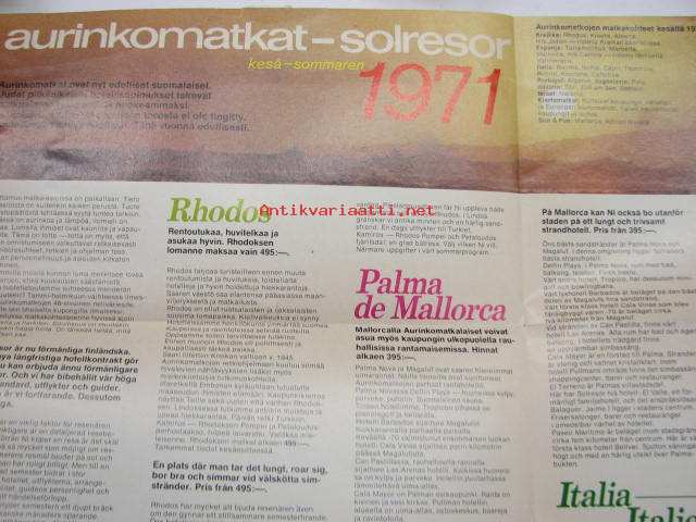 Aurinkomatkat - Solresor kesä 1971 -ennakkoesite