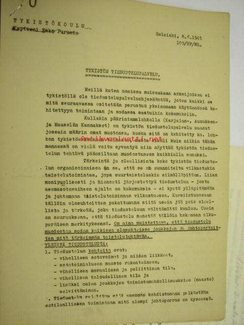Tykistön tiedustelupalvelu - sotakokemuksiin perustuva opetusmonistesarja - Tykistökoulu / Kapteeni Esko Puronto 1945