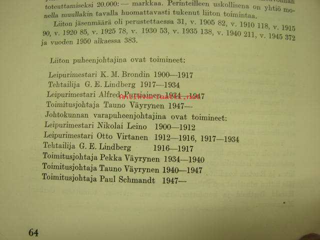 Martti Talvia, Suomen Leipuriliitto, 195019 x 24 cm.