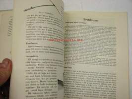 | Saatavilla | 1 kpl | | Julkaisuvuosi | 1949 | | Sivuja | 87 | | Painos | 1. | | Kunto | K2 | | Liimasidos irti | | Sidonta/painoasu | Nidottu (pehmeäk.) | | Kielet | Ruotsi |