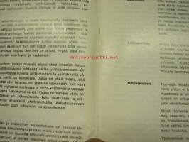 | Saatavilla | 1 kpl | | Julkaisuvuosi | 1967 | | Sivuja | 40 | | Painos | 1. | | Kunto | K3 | | Sidonta/painoasu | Nidottu (pehmeäk.) | | Kielet | Suomi |