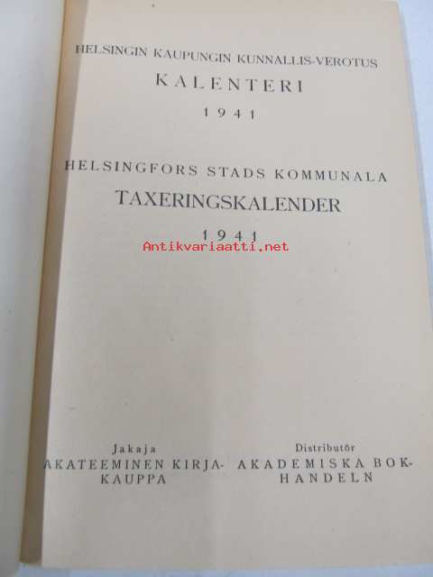 Helsingin kaupungin kunnallisverotuskalenteri - Helsingfors stads kommunala taxeringskalender 1941