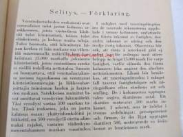 | Saatavilla | 1 kpl | | Julkaisuvuosi | 1941 | | Sivuja | 129 | | Painos | 1. | | Kunto | K4 | | Sidonta/painoasu | Nidottu (pehmeäk.) | | Kielet | Suomi, Ruotsi |