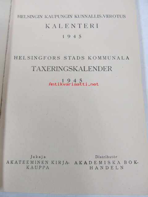 Helsingin kaupungin kunnallisverotuskalenteri - Helsingfors stads kommunala taxeringskalender 1945
