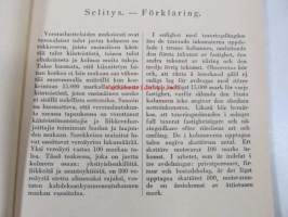 | Saatavilla | 2 kpl | | Julkaisuvuosi | 1945 | | Sivuja | 145 | | Painos | 1. | | Kunto | K3 | | Sidonta/painoasu | Nidottu (pehmeäk.) | | Kielet | Suomi, Ruotsi |