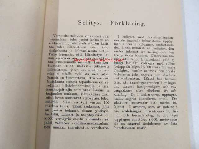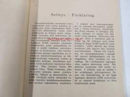 | Saatavilla | 1 kpl | | Julkaisuvuosi | 1957 | | Sivuja | 266 | | Painos | 1. | | Kunto | K3 | | Sidonta/painoasu | Nidottu (pehmeäk.) | | Kielet | Suomi, Ruotsi |