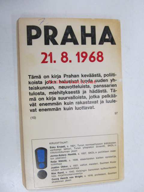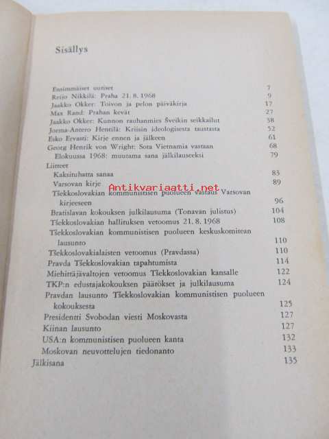 | Saatavilla | 1 kpl | | Julkaisuvuosi | 1968 | | Sivuja | 134 | | Painos | 2. | | Kunto | K3 | | Sidonta/painoasu | Nidottu (pehmeäk.) | | Kielet | Suomi |
