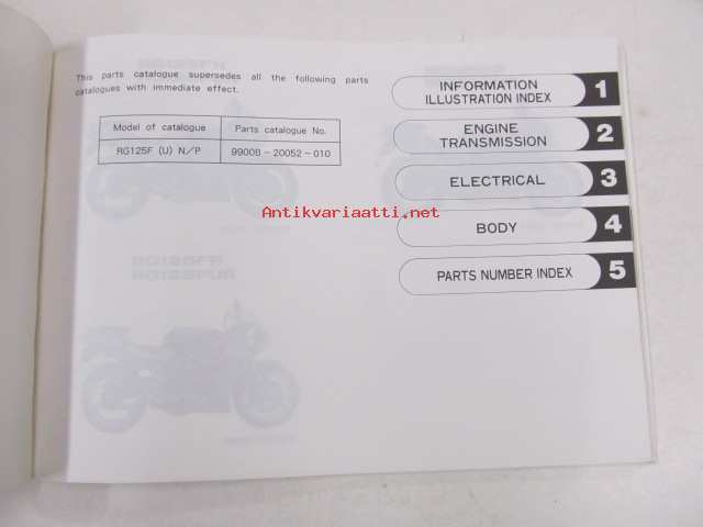 Suzuki RG125F, RG125FN, RG125FUN, RG125FP, RG125FUP, RG125FR, RG125FUR parts catalogue - varaosaluettelo
