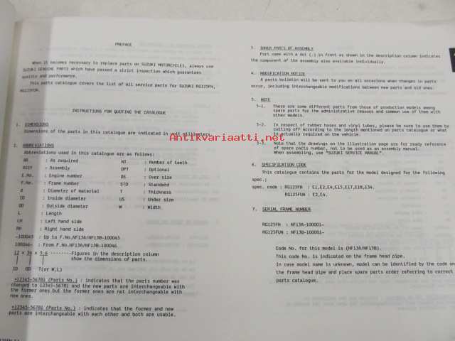 Suzuki RG125F, RG125FN, RG125FUN parts catalogue - varaosaluettelo
